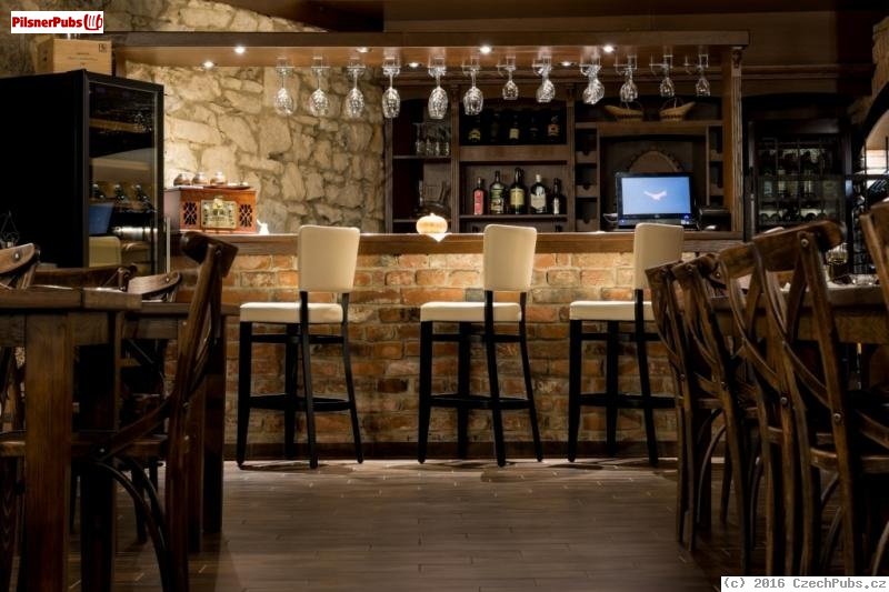 V zajímavých prostorách najdete restauraci s plzeňským pivem a vinárnu. K dispozici je vinný sklípek s 15 - 20 místy a vinná banka, kde si můžete uložit svá vína a popřípadě je nabízet hostům za Vámi určené ceny. Jedinou kuřáckou částí restaurace je "klub džentlmenů", ideální pro společenské konverzace u dobrého pití.