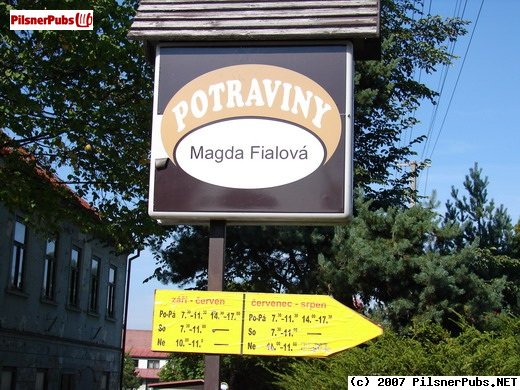 Malý krámek s potravinami a točeným Rychtářem v rodinném domě. Ideální zastávka pro pěší turisty nebo cyklisty. Venkovní sezení pro místní i kolemjdoucí.