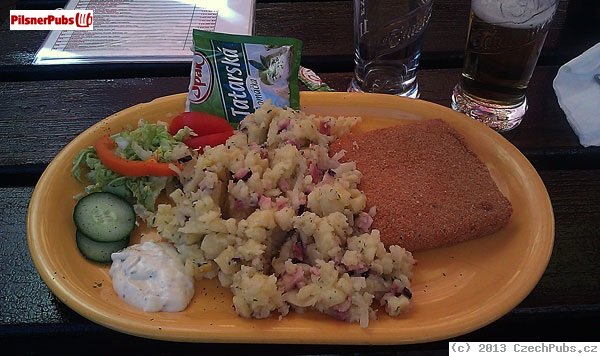 Je mi jedno, že se tu dá v půl druhý objednat hnusná pizza, my tam byli v 5 odpoledne, a děs a hrůza. Zahrádka bez obsluhy, jídlo prostě typickej českej blivajz, miliony položek a všechno na jedno brdo, vrchol hnusu byly šťouchaný brambory (viz foto).