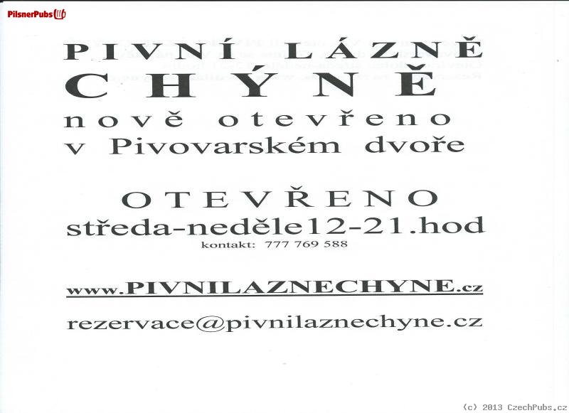 V podniku se točí - Chýně Dvorní ležák 12° - Chýně Dvorní speciál 14° - Chýně Dvorní výčepní 10°.